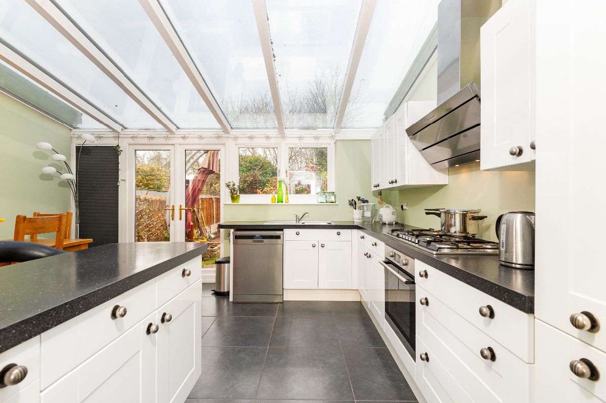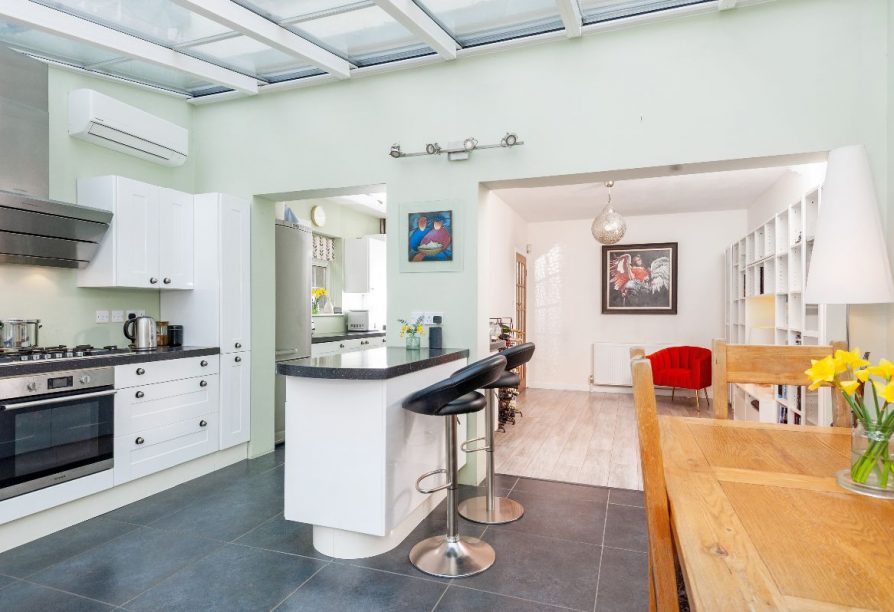 The accommodation offers a bright and welcoming entrance hall which leads into a spacious front reception room. There is a further versatile reception area to the rear which is open plan to the extended modern kitchen/breakfast room. Double doors lead out to the mature south facing rear garden, extending to around 150ft and well stocked with plants and trees. Three good size bedrooms and a family bathroom occupy the first floor in a traditional layout.
