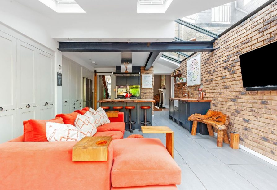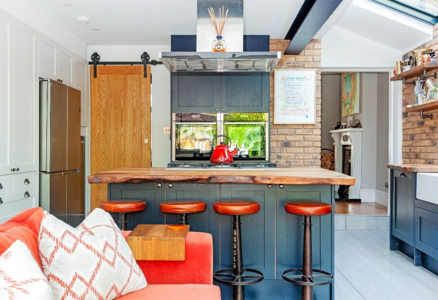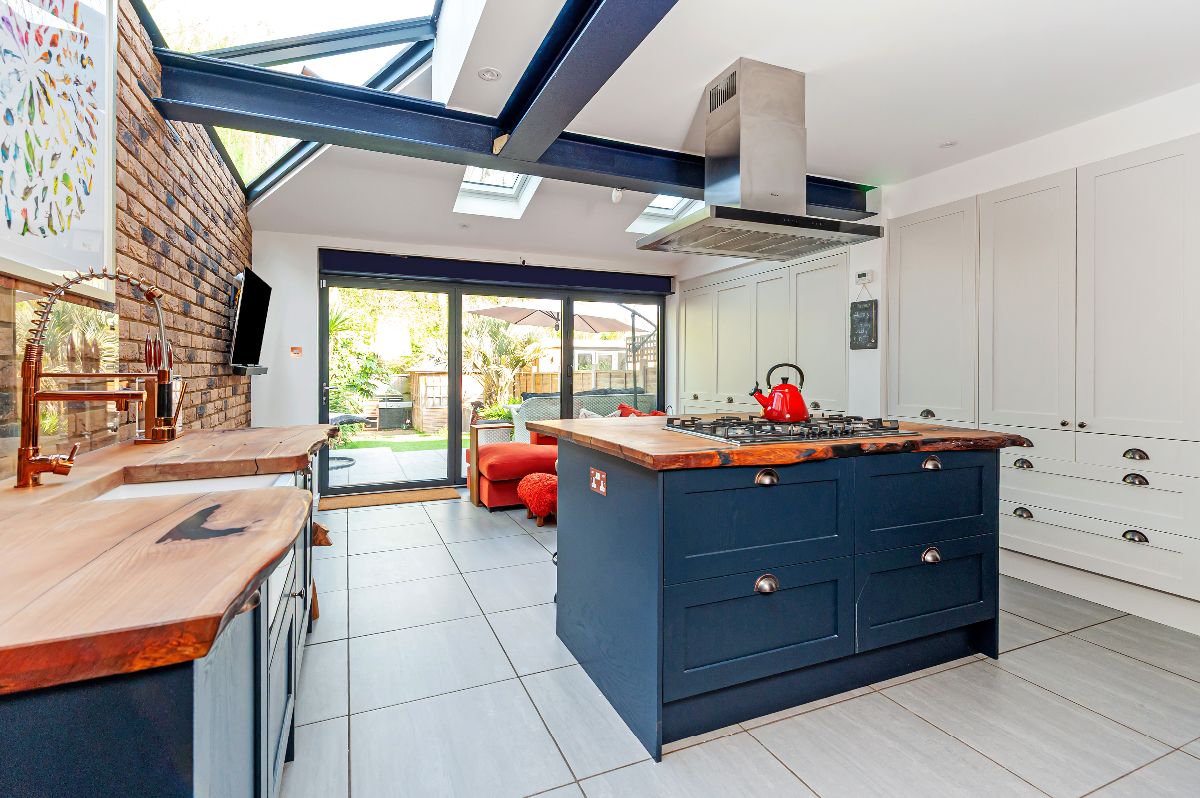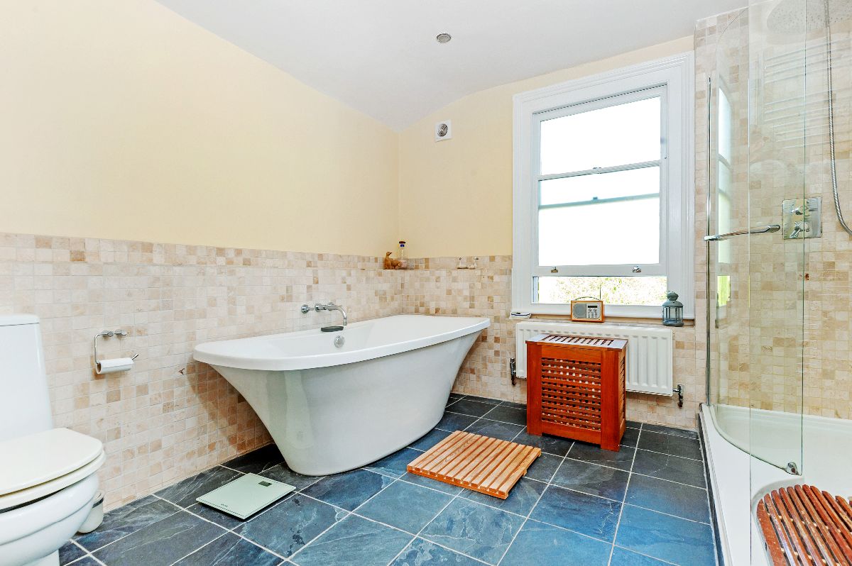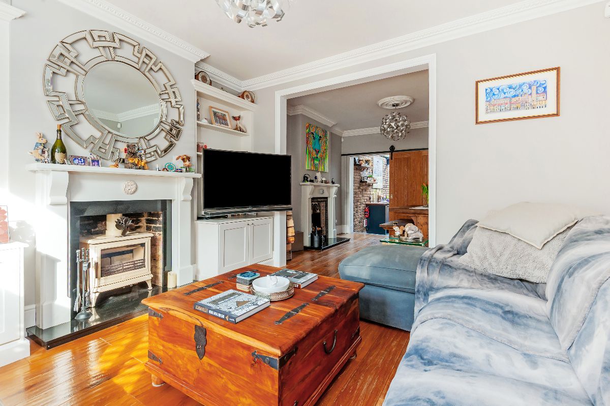 Accessed via a small front and welcoming entrance hall, accommodation to the ground floor comprises a large double reception with designated dining space wooden flooring, tremendous ceiling heights and wood burner and a simply fabulous extended kitchen-diner with bi-fold doors opening onto a lovely and very private rear garden. The strikingly beautiful bespoke kitchen provides a range of high end integrated appliances set within a generous range of units, with an unquestionable air of quality and sense of space and light against the bold colour scheme create a dramatic effect, full of individual, inspiring architectural touches. The mature garden is of particular note , offering privacy and seclusion, with a raised patio and lawn leading down to a lovely BBQ area. Simply the perfect space for entertaining as the river meanders by, and thriving wildlife and birdsong are very special. The first floor offers two double bedrooms and a family bathroom, whilst the second floor provides a further two bedrooms, a luxury shower room, built-in wardrobes and ample eaves storage.