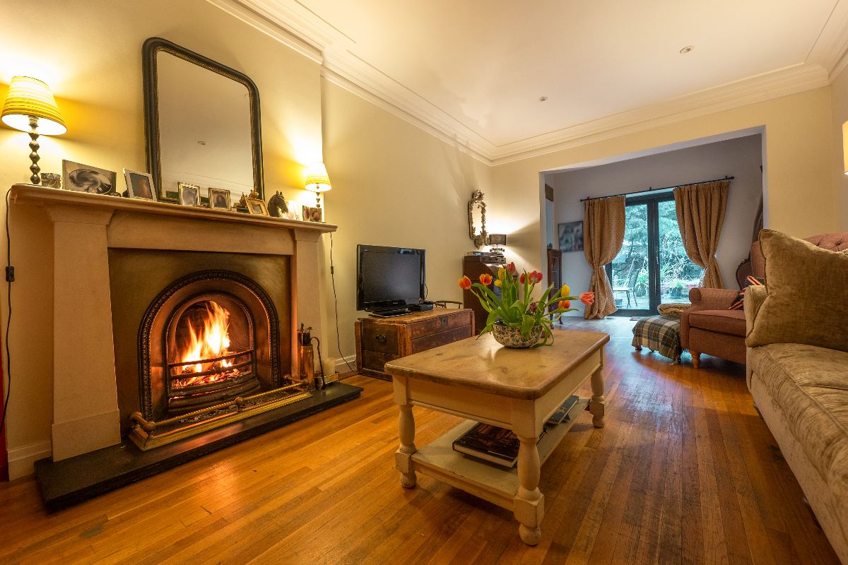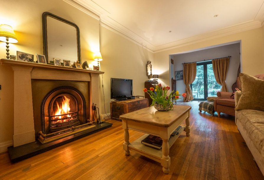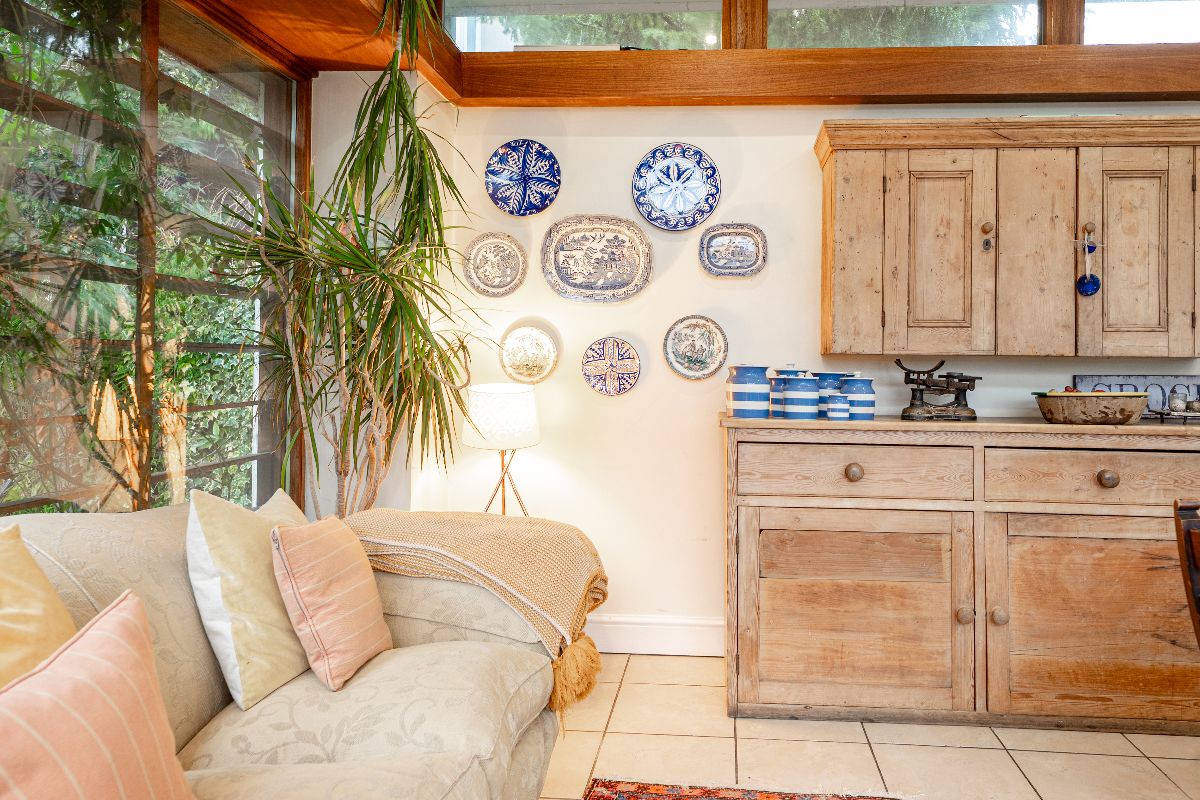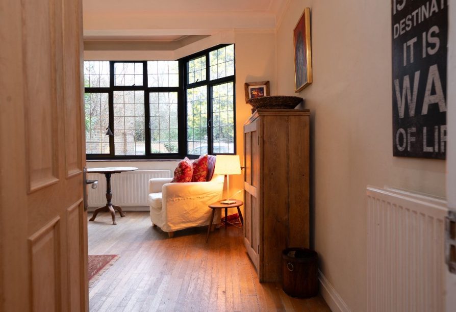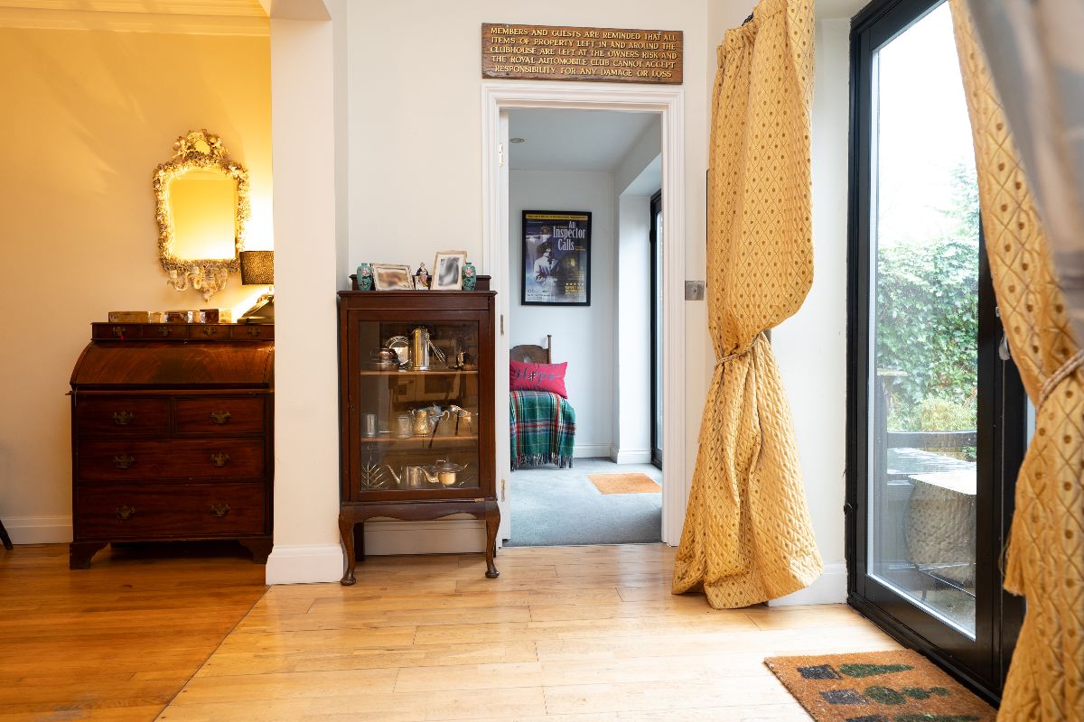 With soft neutral tones running throughout, the house has been much loved and well maintained by the current owners, with modern refinements such as new windows already in place, there remains the opportunity for some gentle updating. The warm and welcoming family friendly entrance hall leads to a spacious drawing room that could be used as a more intimate sitting room, a principle double reception room with anchoring open fireplace, which in turn leads into the private study panelled with bookshelves and built in storage. To the rear of the house, a well-appointed family kitchen and dining room provides the hub of the home, the latter being a wonderfully light and strikingly beautiful mid-century inspired extension is the crowning glory to the living space. A large (very dog friendly) utility room and cloakroom complete the ground floor accommodation.