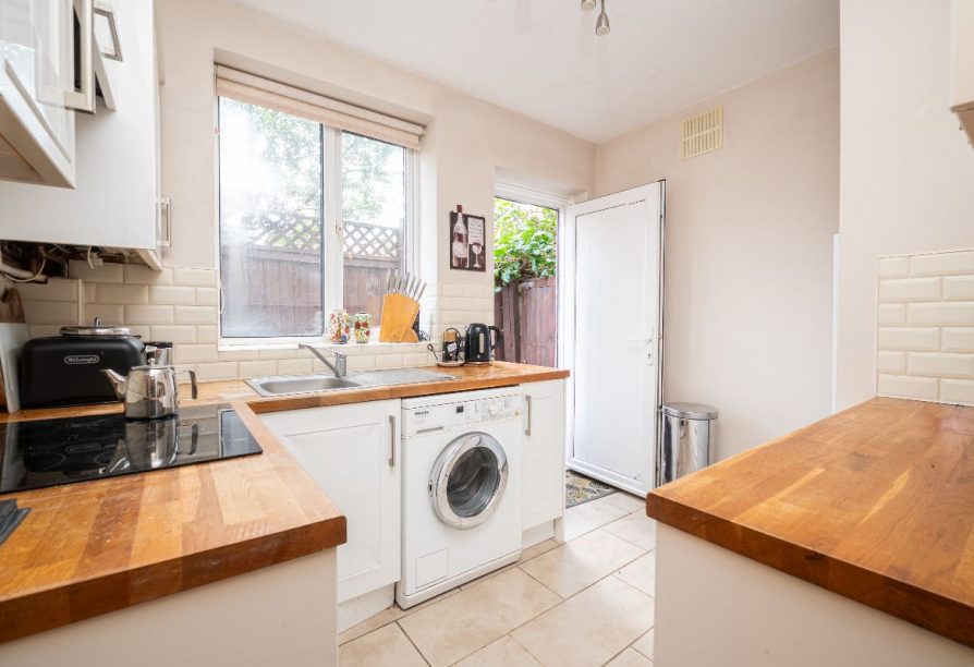 The reception room is well proportioned, comfortably accommodating both living and dining areas. There are two excellent double bedrooms, a contemporary fitted kitchen with direct access to the south-facing private rear garden, and a modern family bathroom. Additional benefits include ample storage throughout and the advantage of being offered to the market with no onward chain.