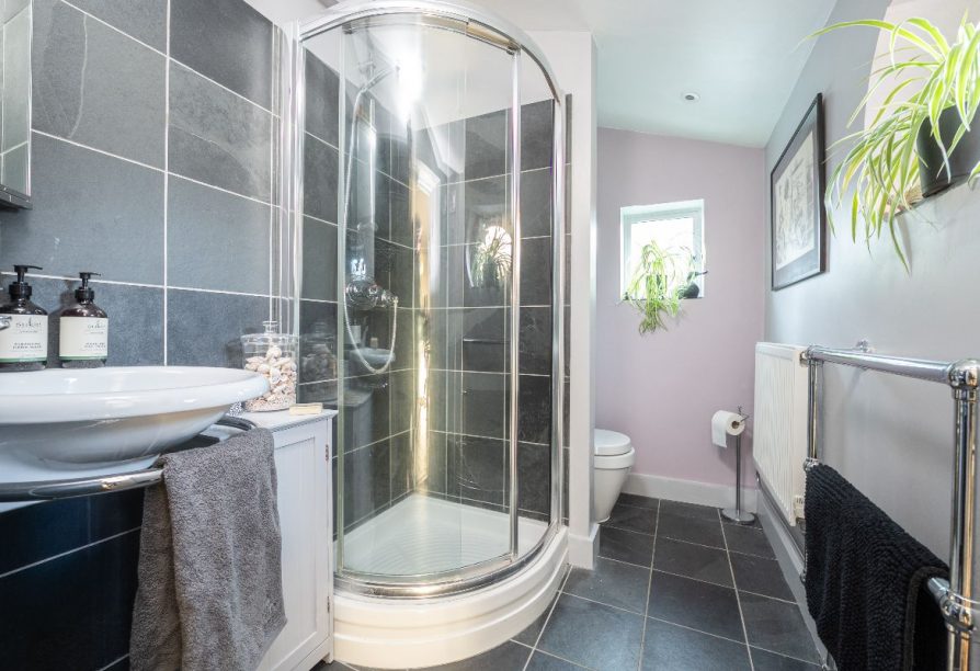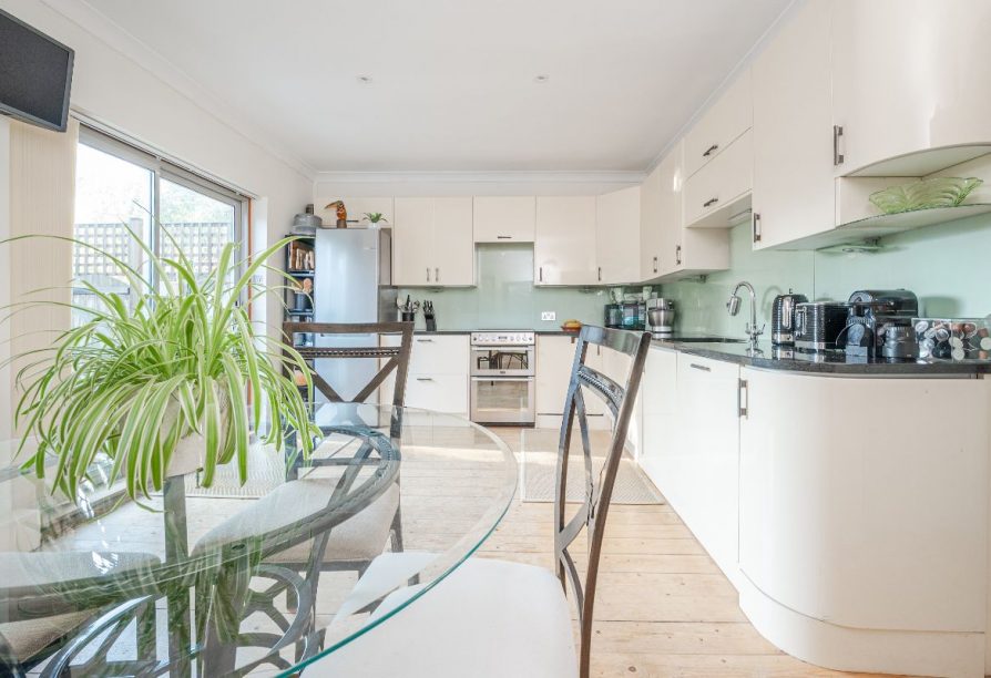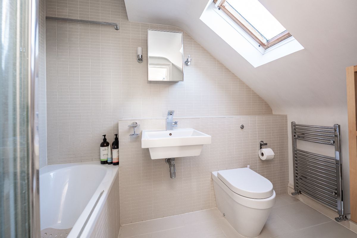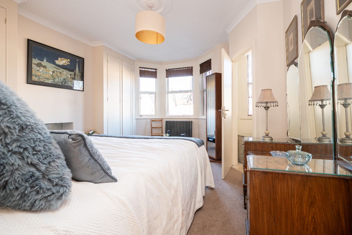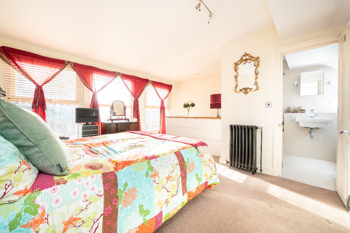 Offering well-balanced accommodation over three floors, the ground floor comprises an entrance hall, an elegant sitting room with fireplace and bay window, and a lovely full-width kitchen/dining room with modern shower room adjoining, and French doors leading out to a very pretty south-facing rear garden. There remains the potential to extend the existing ground floor to create a stunning kitchen-diner, subject to the necessary consent. The first floor offers three bedrooms including a full width double with ensuite wc and vanity sink, with a spacious master suite with built in wardrobes and a modern shower room situated on the second floor. There is also access to lots of eaves storage. With some reconfiguration we believe the house could easily present as a luxurious three bedroom/ three bathroom to the upper floors.