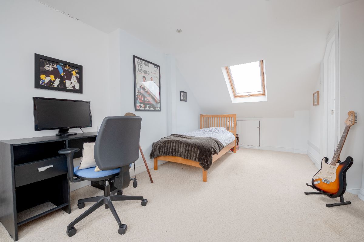 The welcoming entrance hall leads to the through reception and dining room with wonderful ceiling heights and natural light, a working fireplace, and a range of fitted cabinets. The cosy breakfast/coffee room adjoins a well-equipped kitchen with integrated appliances and potential to extend into the side return and garden (STPP). To the first floor there is a spacious, full width master bedroom with hand painted built-in wardrobes, a further beautifully presented double bedroom with views over the garden and a large family bathroom. The loft has been converted to provide another double bedroom with an en-suite shower and plenty of useful storage into the eaves. An additional single bedroom/study provides that little bit extra or quiet space to work from home.