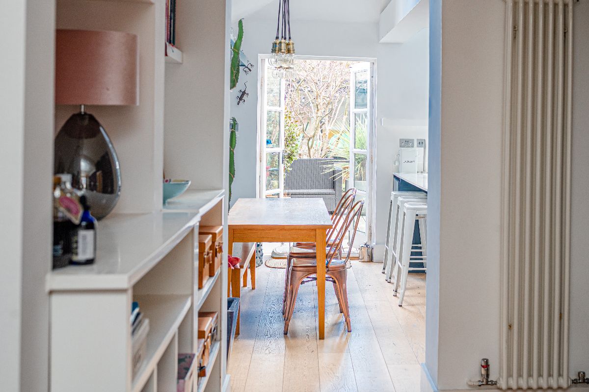 To the ground floor, the living space comprises an entrance hall, double reception with wooden flooring, bespoke cabinetry and character fireplace, and a super and well equipped extended kitchen-diner with high vault ceilings and French doors leading into the garden. The first floor offers two spacious double bedrooms (the larger incorporating built-in wardrobes) and a fabulous family bathroom with separate shower. The second floor features a wonderful master suite, complete with en suite shower room and bags of storage, with lovely rooftop views across gardens and All Souls Church.