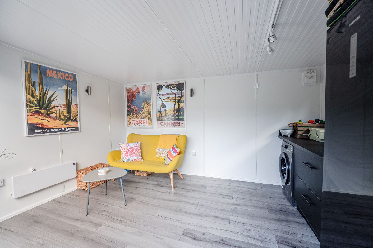 At the rear, a well-stocked garden unfolds, measuring well in excess of ..... feet in length with patio area, lawn and borders of mature plants and trees lead to a modern garden room with power and lighting providing addition al storage and the all-important work from home space.