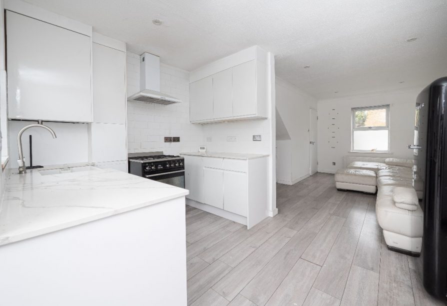 Well presented throughout, the ground floor offers an open plan layout with a generous living area flowing seamlessly into a contemporary kitchen. Double doors open directly onto a private south facing garden, creating a bright, sociable space ideal for relaxing or entertaining.