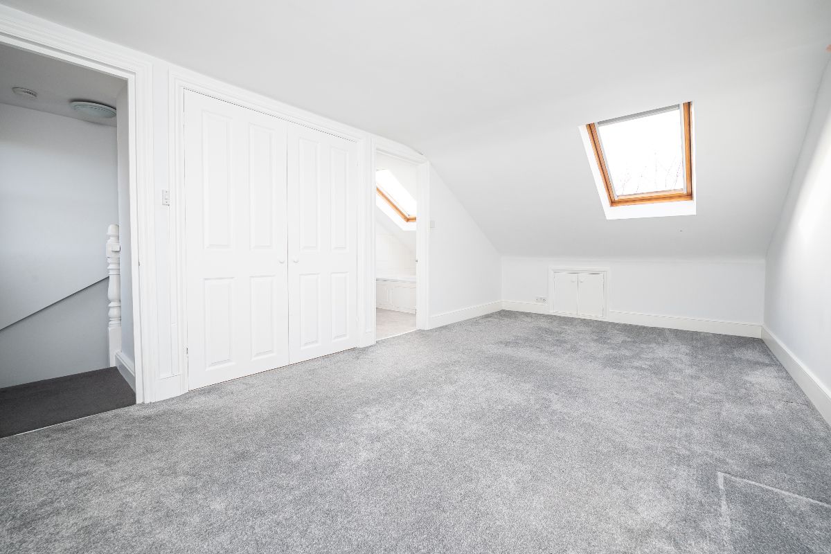 Accommodation comprises a tiled entrance hall, elegant high-ceilinged double reception room, country style kitchen and dining room with access to a large south-east-facing garden. On the first floor a good-size master bedroom and two further bedrooms are served by a lovely family bathroom, with a fourth bedroom ensuite and lots of eave storage on the top floor.