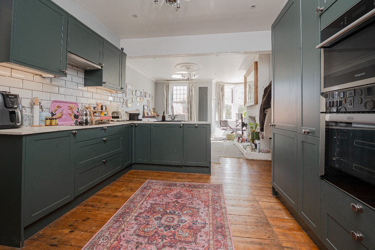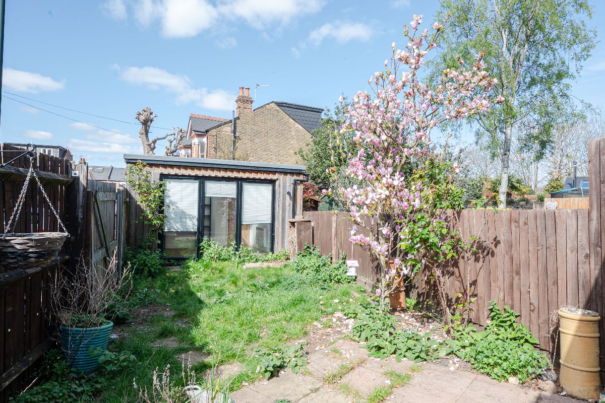 Situated on the end of the terrace, this wonderful ground floor property offers a fabulous bright and spacious reception room with a feature turret style dining area opening into a sleek and modern fully fitted kitchen. There are two bedrooms, the principle bedroom offering a range of fitted wardrobes and direct access to the private rear garden, there is a modern bathroom suite and a separate home office/studio to the rear garden.